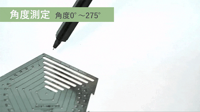 1つのペンタゴンツールに2種類の分度器があり、0°から275°まで5°刻みと10°刻みで測定できます。
