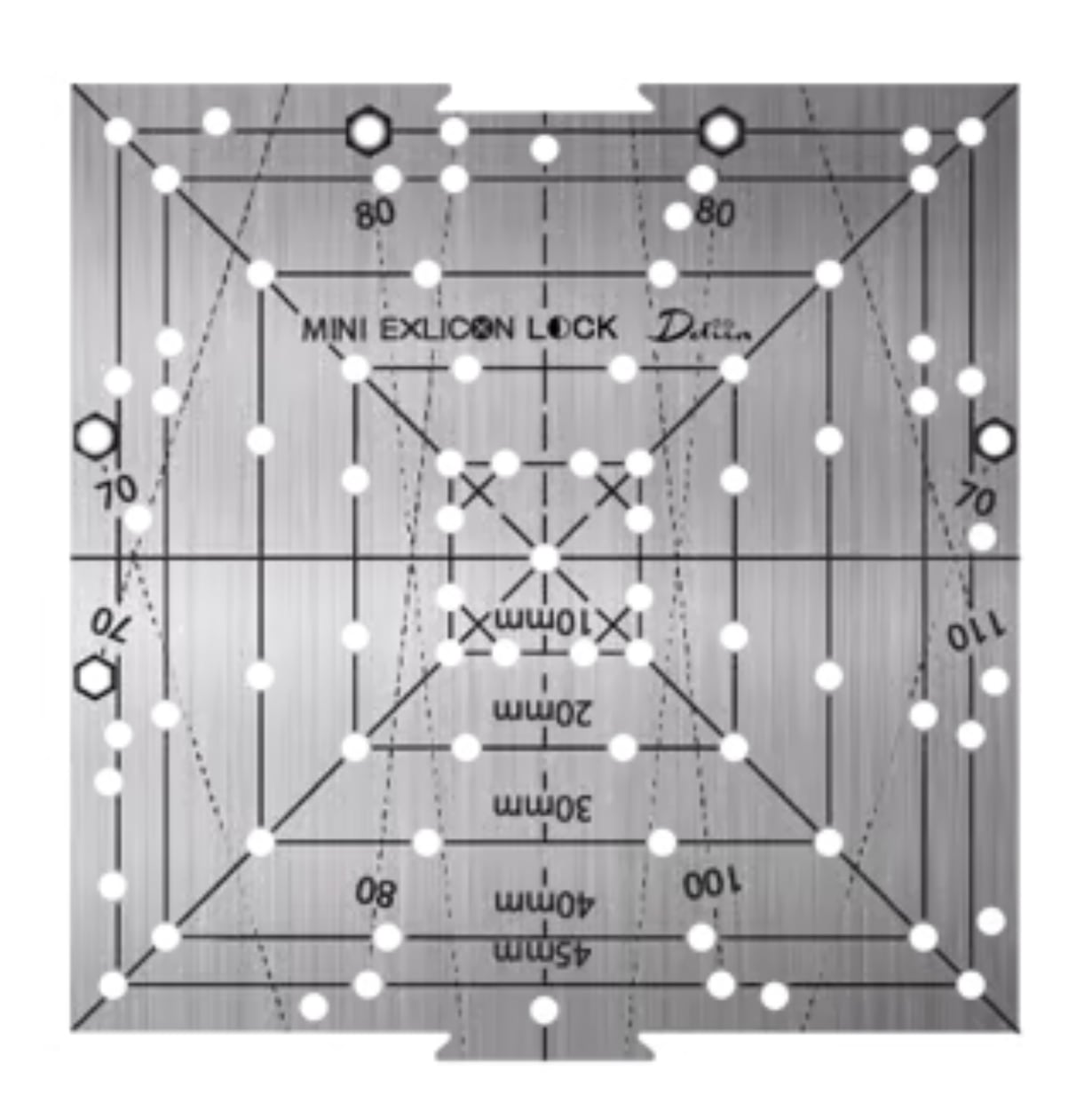 このツールには7つのライン穴があり、それぞれ幅3mm、長さは14mmから57.5mmまでの範囲です。 マーカーペンを使いやすいように設計されています。
